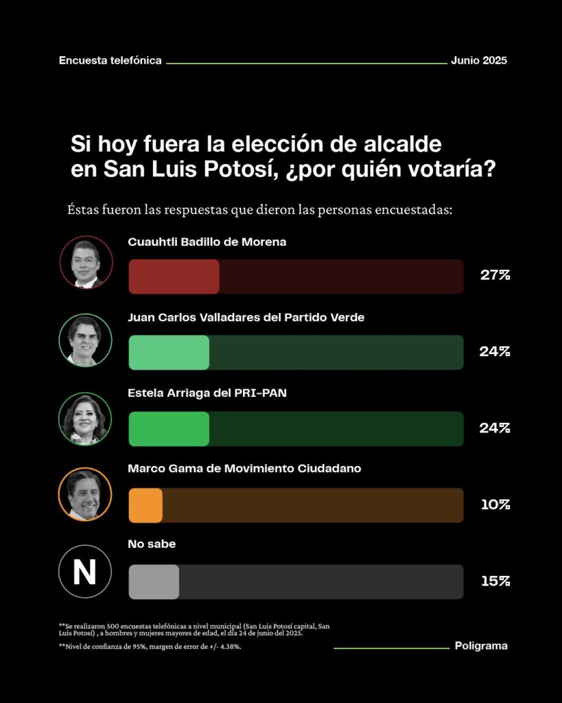 El diputado morenista Cuauhtli Badillo es el favorito, aunque por poco, para ser votado por la ciudadanía como el próximo alcalde de San Luis Potosí capital.