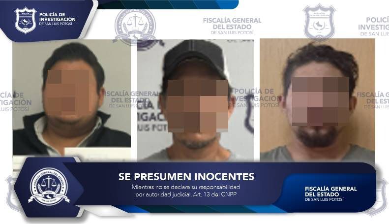 La Fiscalía General del Estado de San Luis Potosí (FGESLP), a través de la Policía de Investigación (PDI), cumplimentó tres órdenes de aprehensión en contra de Antonio “N”, Luis “N” y Javier “N” por el presunto delito que la ley establece como robo calificado.
