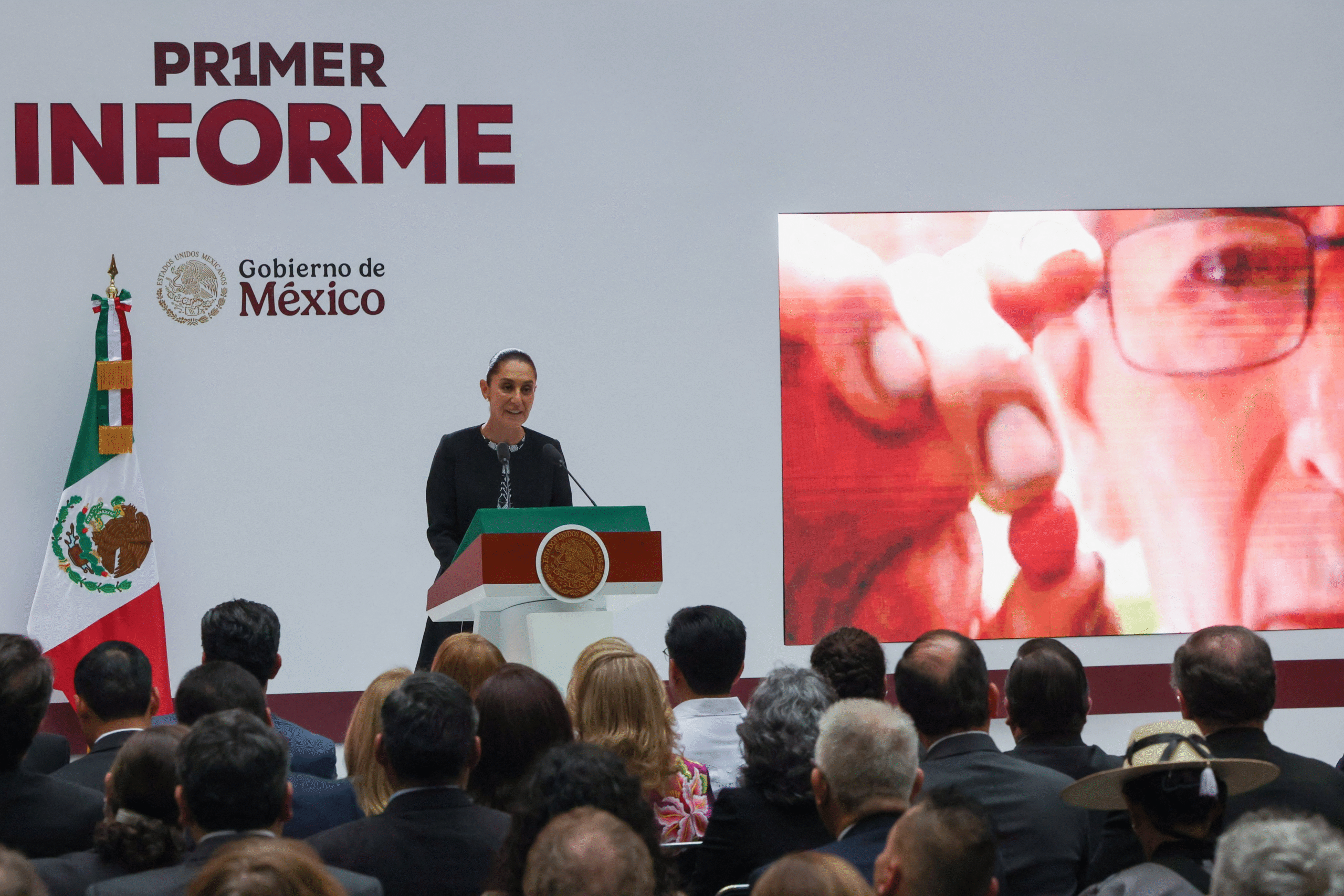 Este lunes, la presidenta Claudia Sheinbaum rindió su Primer Informe de Gobierno desde Palacio Nacional, acompañada de gobernadores, miembros del gabinete y del gabinete ampliado. La ceremonia inició con la entonación del Himno Nacional de México y se realizó bajo un protocolo solemne.