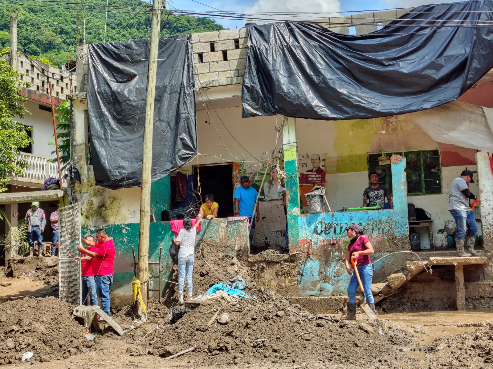 Debido a la creciente del río Moctezuma, se requiere el apoyo de más personas para retirar el lodo, ya que en muchas viviendas el agua alcanzó hasta tres metros de altura, dejando toneladas de sedimento.