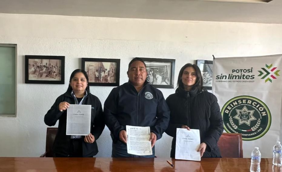 La Secretaría de Seguridad y Protección Ciudadana del Estado, a través de la Dirección General de Prevención y Reinserción Social, concretó la firma de un convenio de colaboración en el Centro Estatal de Reinserción Social de San Luis Potosí con la empresa “Casa Teenek” Interiorismo y Mobiliario, con el propósito de fortalecer los procesos de reinserción social de las personas privadas de la libertad mediante actividades productivas.