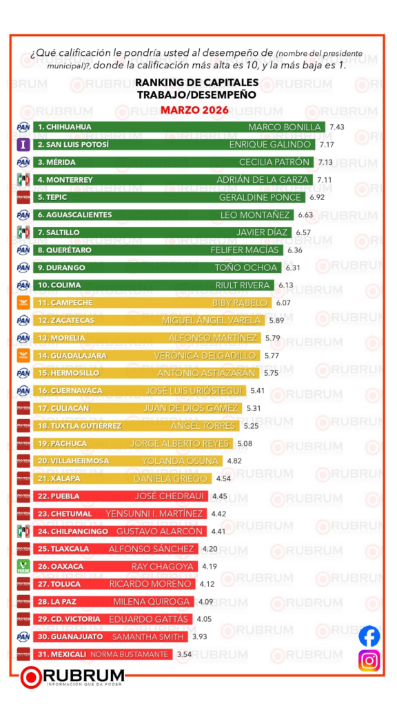 La evaluación completa: https://rubrum.info/evaluacion-ciudadana-en-31-capitales-estatales-marzo-2026/