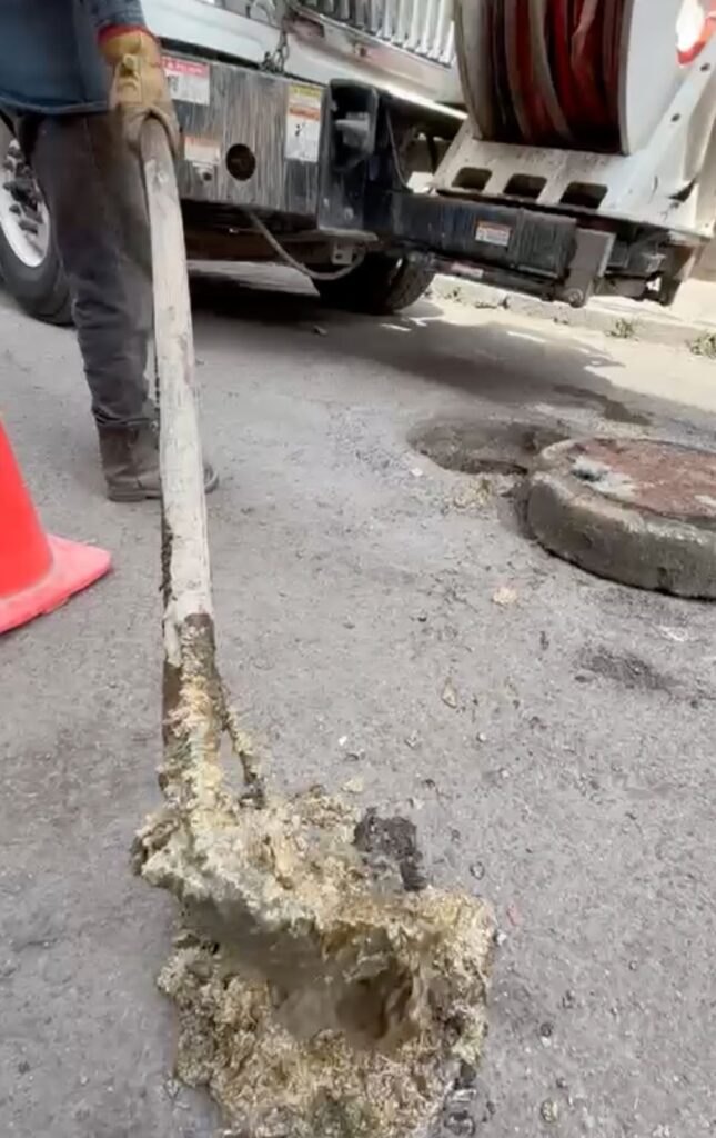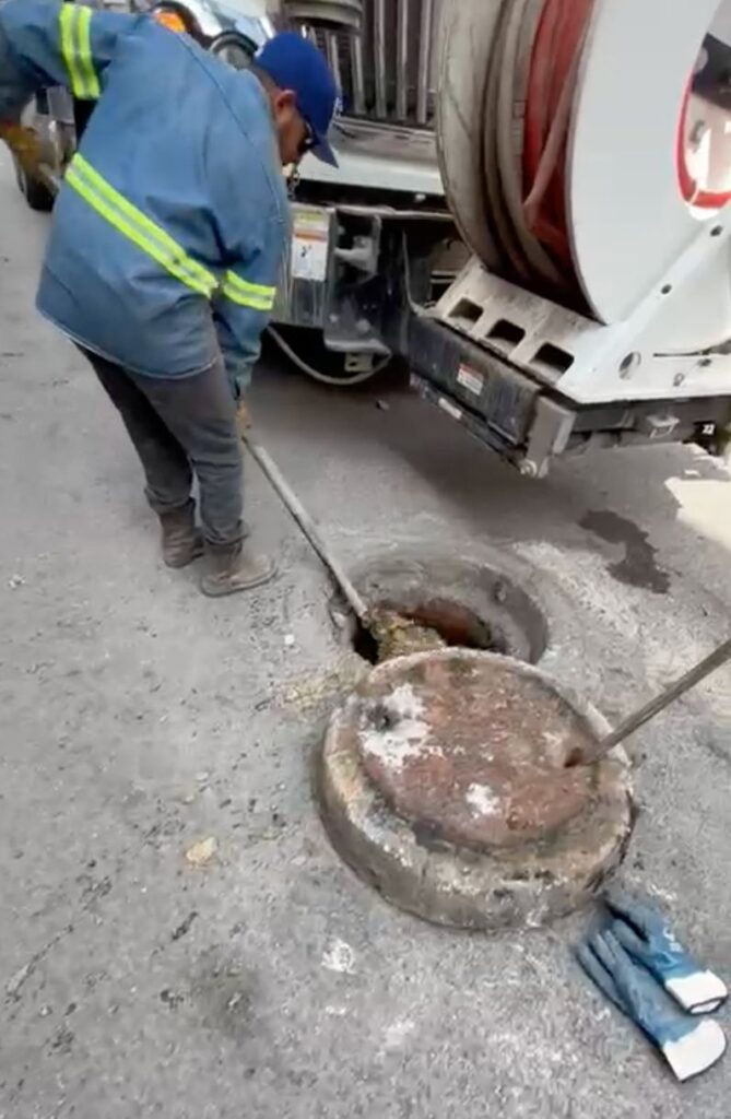 Durante estas acciones, cuadrillas del organismo realizaron la limpieza de 230 metros de línea de drenaje, además de la atención y desazolve de seis pozos de visita, puntos clave para el mantenimiento y operación de la red sanitaria.