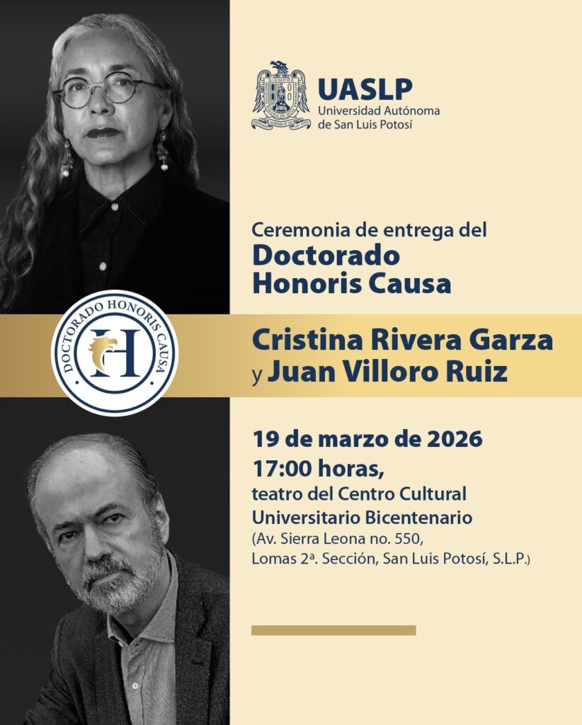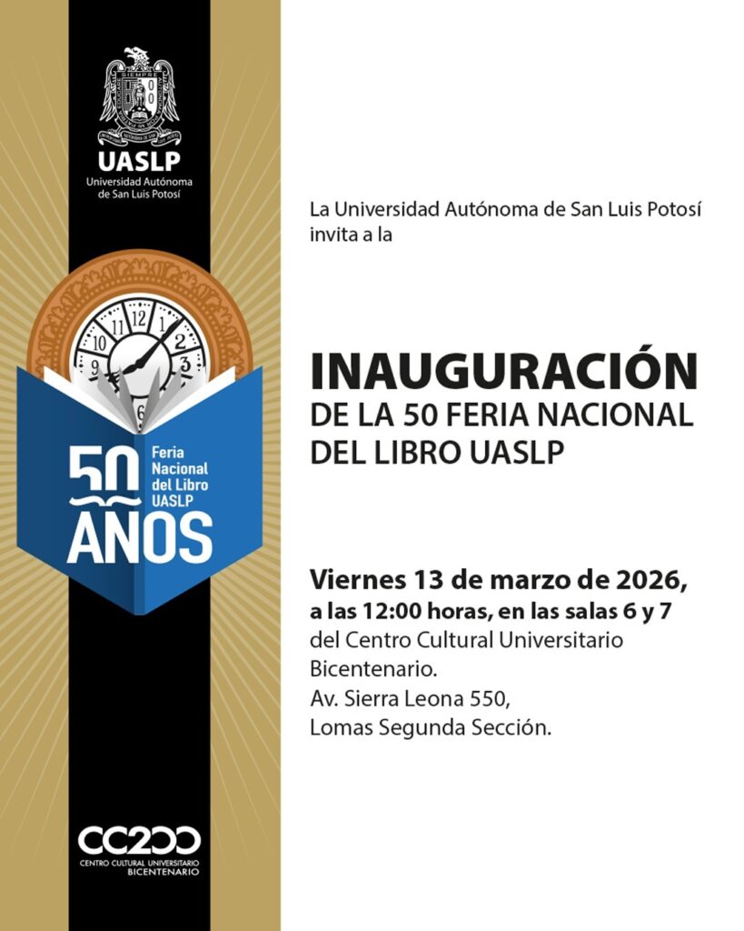 La Universidad Autónoma de San Luis Potosí celebrará en grande la edición número 50 de la Feria Nacional del Libro de la UASLP, que contará con la participación de reconocidos autores nacionales e internacionales. Entre los invitados más destacados se encuentran Juan Villoro y Cristina Rivera Garza, quienes además recibirán el Doctorado Honoris Causa que otorga la universidad el jueves 19 de marzo, a las 17:00 horas, en el teatro del Centro Cultural Universitario Bicentenario, en reconocimiento a su trayectoria literaria y aportaciones a la cultura.