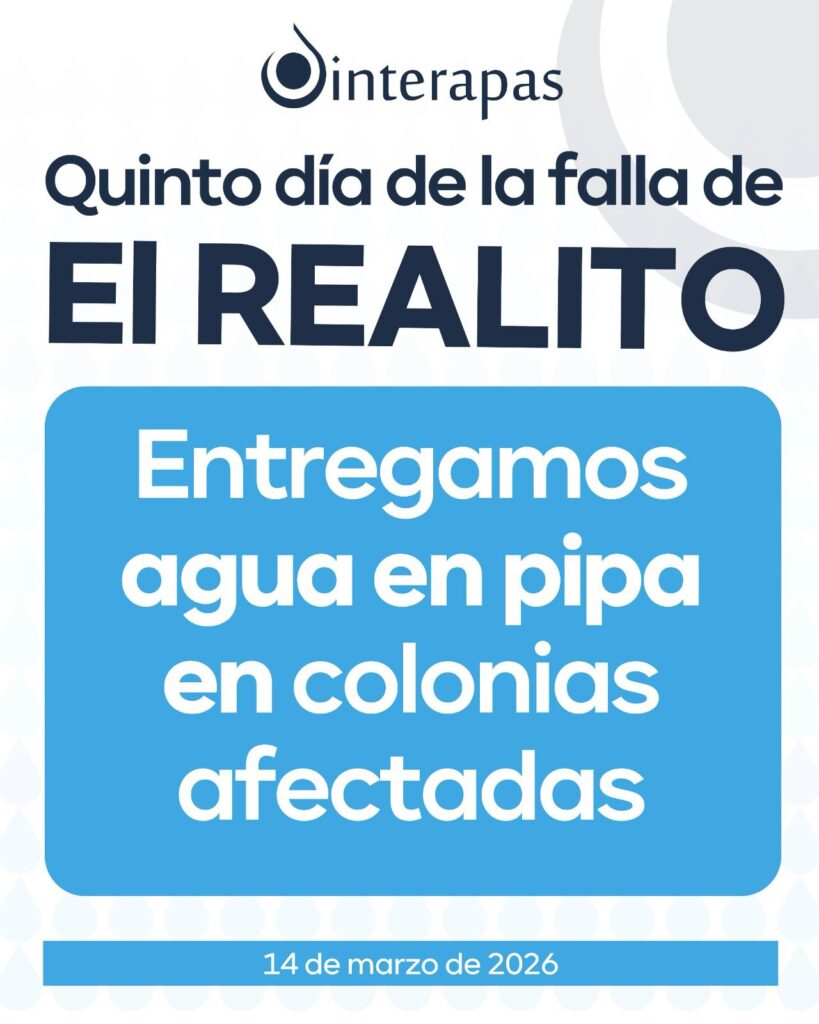Interapas reiteró que se mantiene trabajando de manera permanente para atender a la ciudadanía, fortaleciendo las alternativas de abastecimiento mientras se restablece el funcionamiento del acueducto.