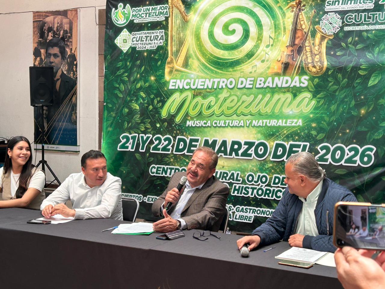 Gracias al apoyo del Gobernador Ricardo Gallardo Cardona a la cultura en todas las regiones, la Secretaría de Cultura y el ayuntamiento de Moctezuma anunciaron la realización del Primer Encuentro de Bandas de Música los días 21 y 22 de marzo, con una programación que acerca el talento artístico a la población.