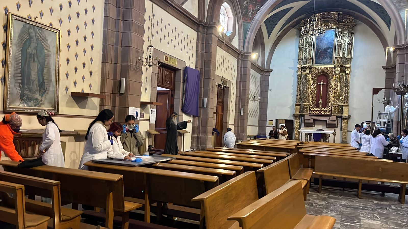 La arquitecta encargada del proceso de restauración, Mary Carmen Ramírez, informó que alumnos de sexto semestre, quienes actualmente cursan la materia Conservación de Escultura Policromada, realizaron labores especializadas para la eliminación de hollín, utilizando materiales proporcionados por la propia iglesia. Asimismo, adelantó que será necesaria una segunda intervención, ya que aún existen piezas que requieren atención.