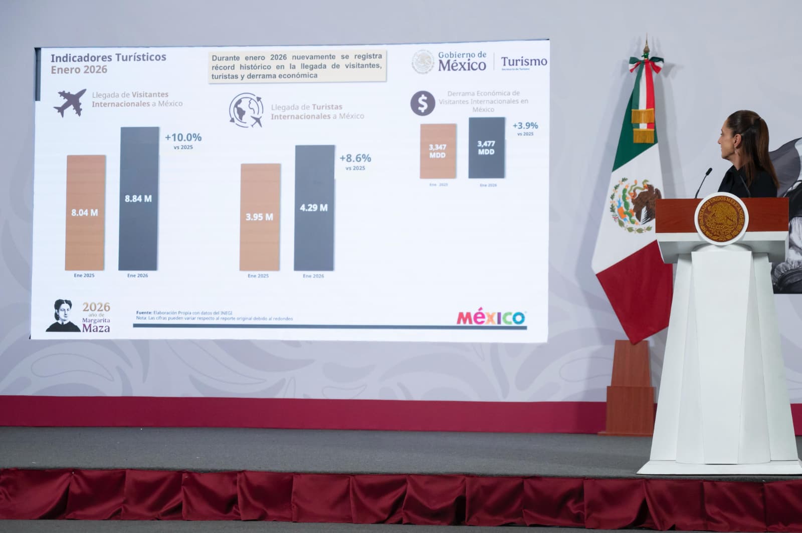 Anunció que en mayo, la aerolínea del Estado mexicano recibirá la primera aeronave Embraer de las siete programadas para este año, con lo que concluirá el 2026 con una flota de 12 aviones. Para 2027 llegarán ocho más, sumando 20 en total. Agregó que en junio de este año se abrirá la ruta hacia Acapulco, Guerrero y en julio a Hermosillo, Sonora; además se estima abrir tres destinos más.