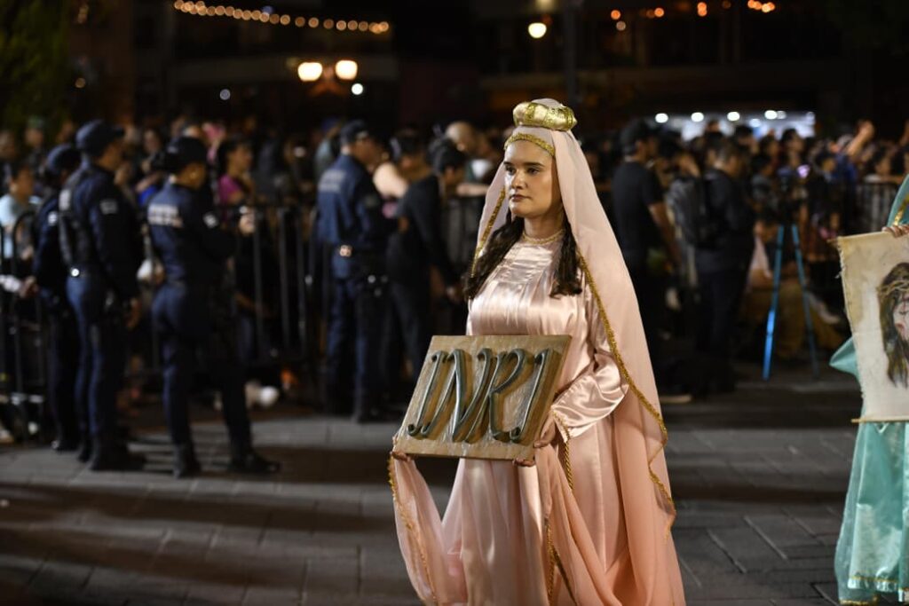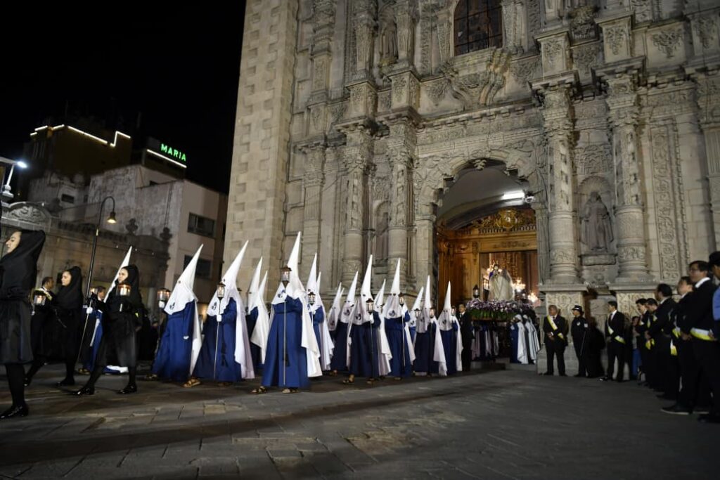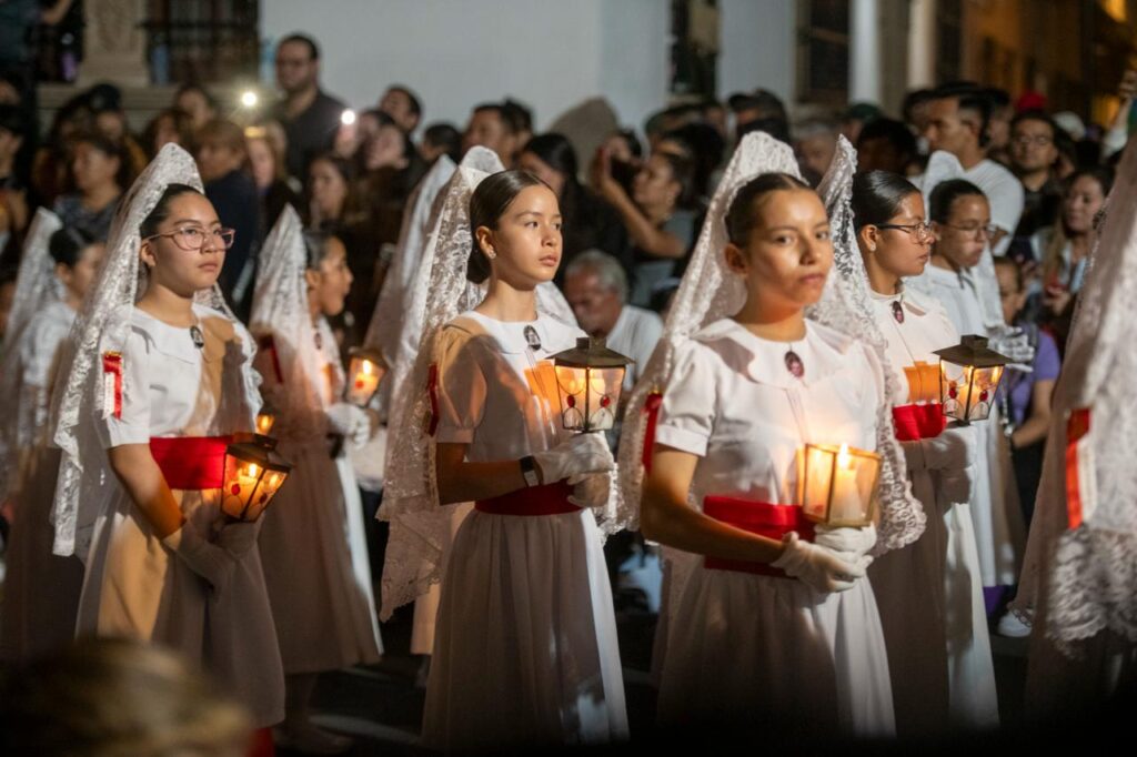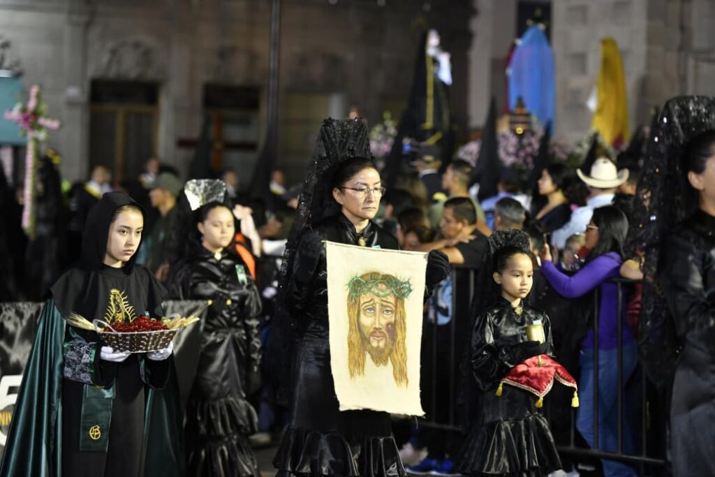El tradicional recorrido inició en punto de las 20:00 horas en el Templo del Carmen, donde las cofradías se presentan portando túnicas en colores rojo, blanco, morado y negro, principalmente, representando los distintos pasajes de la Pasión y Muerte de Cristo. En un ambiente de profundo respeto y solemnidad, el paso de las cofradías rompió el silencio de la noche, generando una experiencia única que envuelve tanto a participantes como a espectadores.