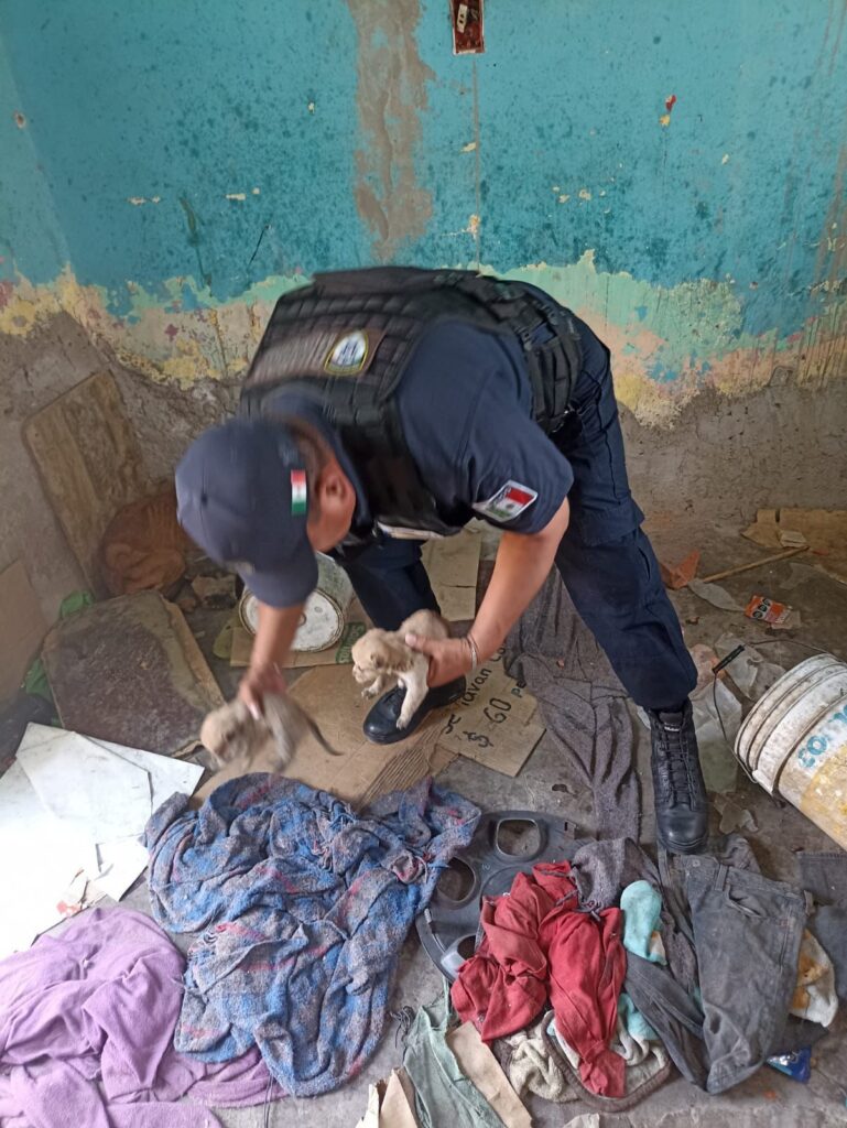 Como resultado de la atención inmediata a un reporte ciudadano, oficiales de Guardia Municipal de la Secretaría de Seguridad y Protección Ciudadana de la Capital realizaron el rescate de 10 caninos localizados al interior de un inmueble ubicado en la calle Doctor José López Hermosa, en la zona del Saucito.