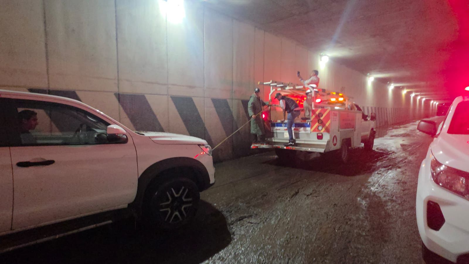 El titular de la dependencia, Mauricio Ordaz Flores, encabezó recorridos junto con células operativas en áreas con afectaciones, donde se brindó auxilio a conductores y personas que lo requirieron, particularmente en el desnivel de Plaza San Luis, donde se registraron encharcamientos por el aumento en el nivel del agua.