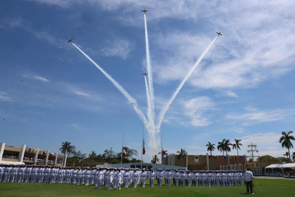 “Que la lealtad los guíe, que la honestidad siempre los sostenga, que el amor a su familia los acompañe siempre y que el amor profundo a la patria y al prójimo sea la luz que los oriente en cada uno de sus pasos. México los necesita, necesita hombres y mujeres valientes, necesita marinos valientes, necesita fuerza y principios, disciplina y sobre todo corazón. No olvidemos nunca que el amor siempre vence al odio y el amor al pueblo y a la patria siempre vence al entreguismo y a la ambición. No olvidemos nunca que la patria se ama y se defiende, que ese juramento viva en cada uno, cada una de ustedes, todos los días”, fue el mensaje de la Comandanta Suprema de las Fuerzas Armadas en el acto que se realizó en el Campo de Honor de la Heroica Escuela Naval Militar en Alvarado, Veracruz.