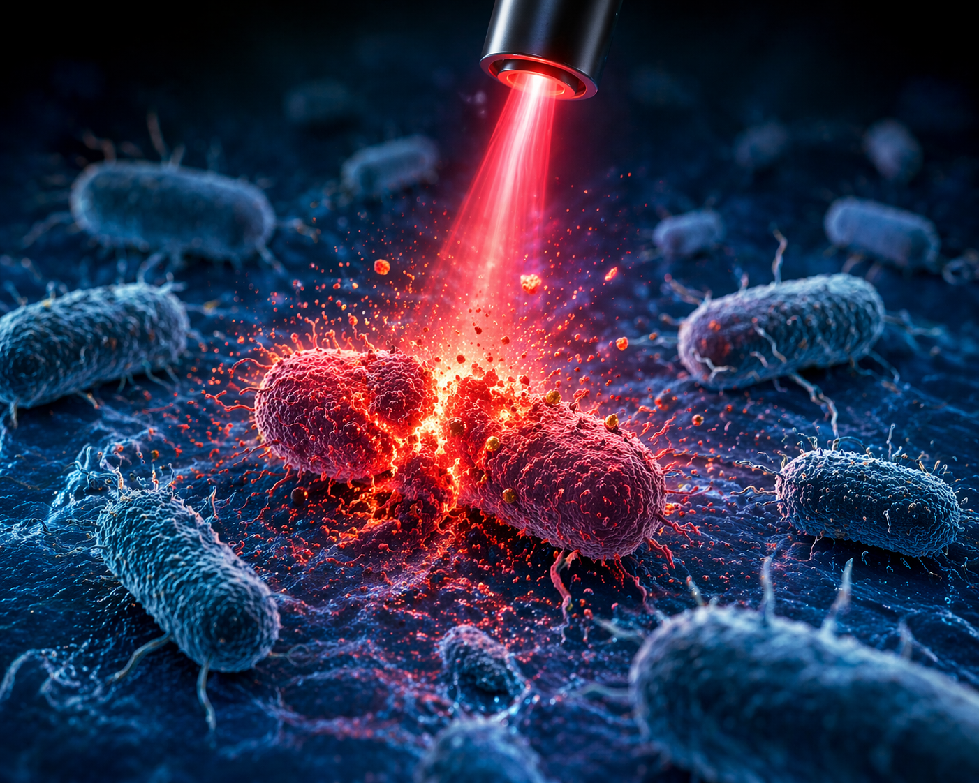 La Organización Mundial de la Salud (OMS) ha catalogado la resistencia antimicrobiana como una de las diez principales amenazas globales para la salud pública. En un entorno donde los fármacos convencionales fracasan ante bacterias multirresistentes, la tecnología fototérmica no solo emerge como una alternativa, sino como un cambio de paradigma estratégico. Mientras los antibióticos químicos dependen de rutas metabólicas que las bacterias «aprenden» a bloquear, la Terapia Fototérmica (TFT) utiliza la física para ejecutar una «cirugía térmica» letal.
